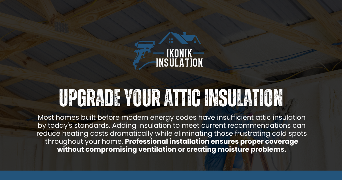 Most homes built before modern energy codes have insufficient attic insulation by today's standards. Adding insulation to meet current recommendations can reduce heating costs dramatically while eliminating those frustrating cold spots throughout your home. Professional installation ensures proper coverage without compromising ventilation or creating moisture problems.